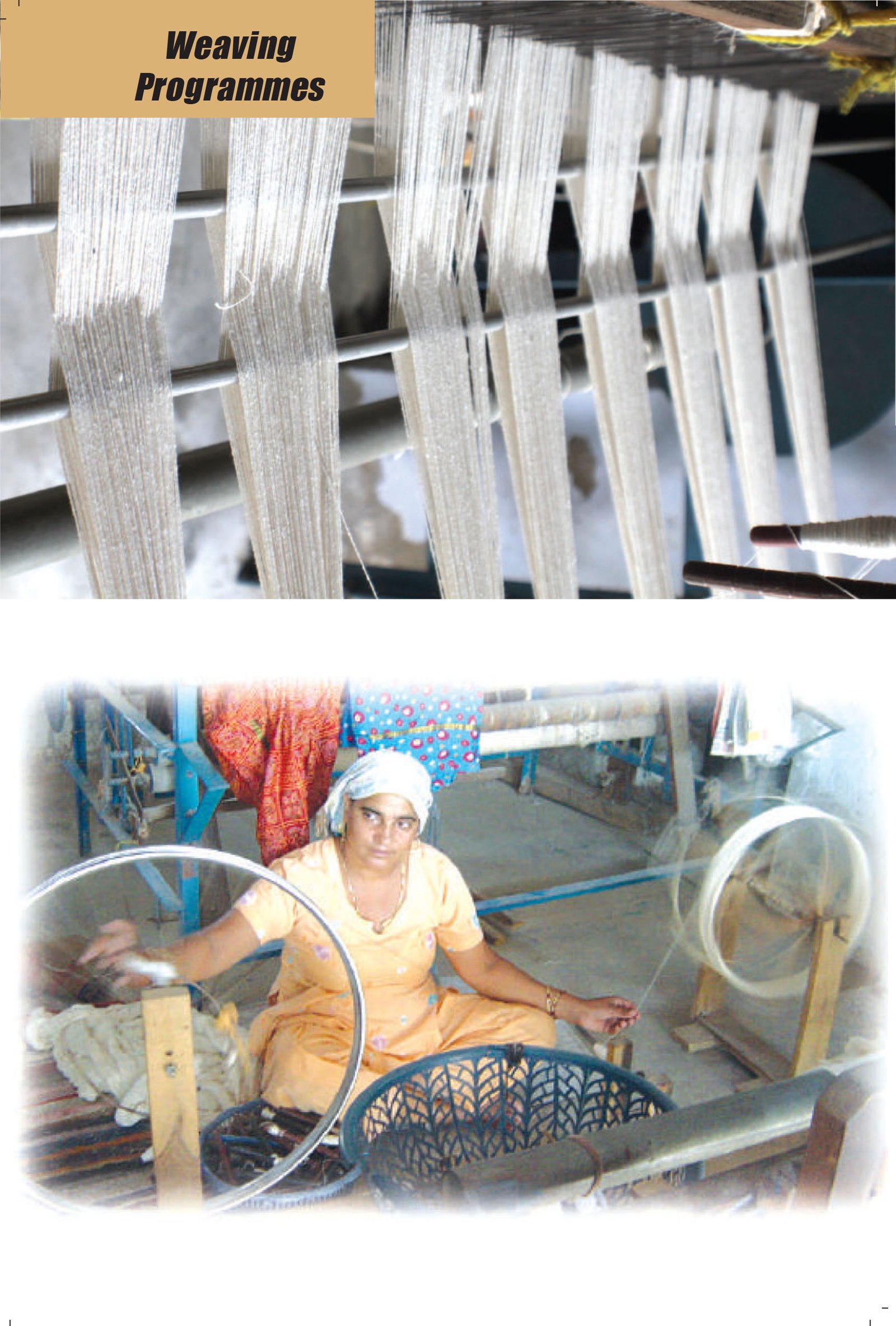 Under the women’s Self Help Group programme, the handloom weaving centre provides women with an opportunity for income generation and interaction. The finished products are sold through ‘Dilli Haat’ in